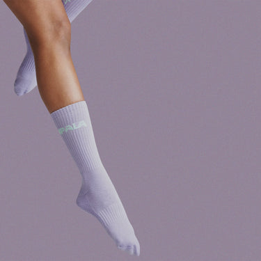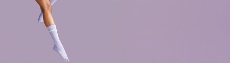 Our crew length skate socks are made from an organic cotton, nylon, and elastane blend for stretch and comfort. Their calf-length rise makes them perfect for skating, comfortably sitting above your boot line and offering plenty of comfort while you skate!